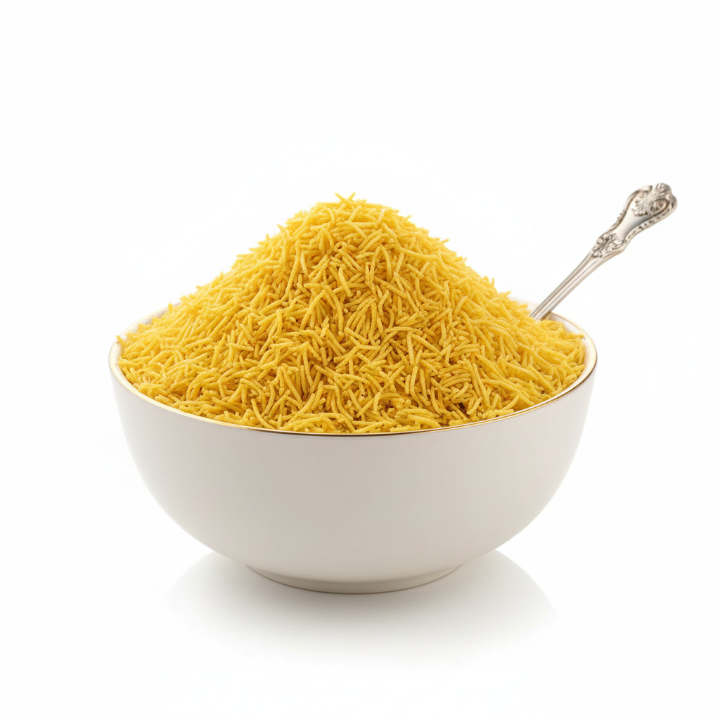 Delicately thin, golden, and full of flavour — our Nylon Sev is a true taste of Gujarat in every crunch. Made from premium gram flour and seasoned with just the right hint of spice, it’s fried to airy perfection, creating a light and crispy snack that pairs beautifully with chai, chaats, or your favourite farsan mix.